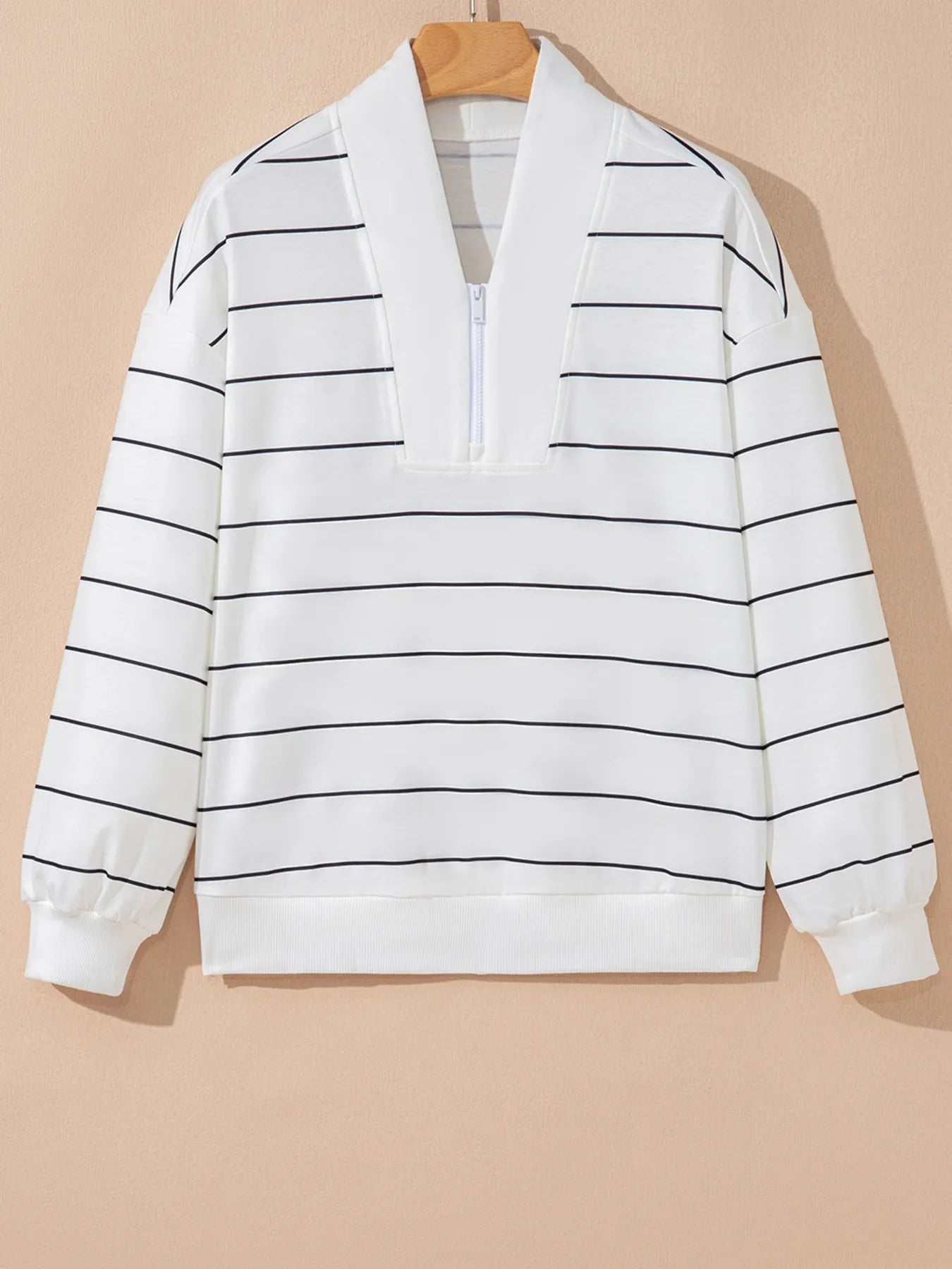 Striped Quarter Zip Sweatshirt with Relaxed Fit